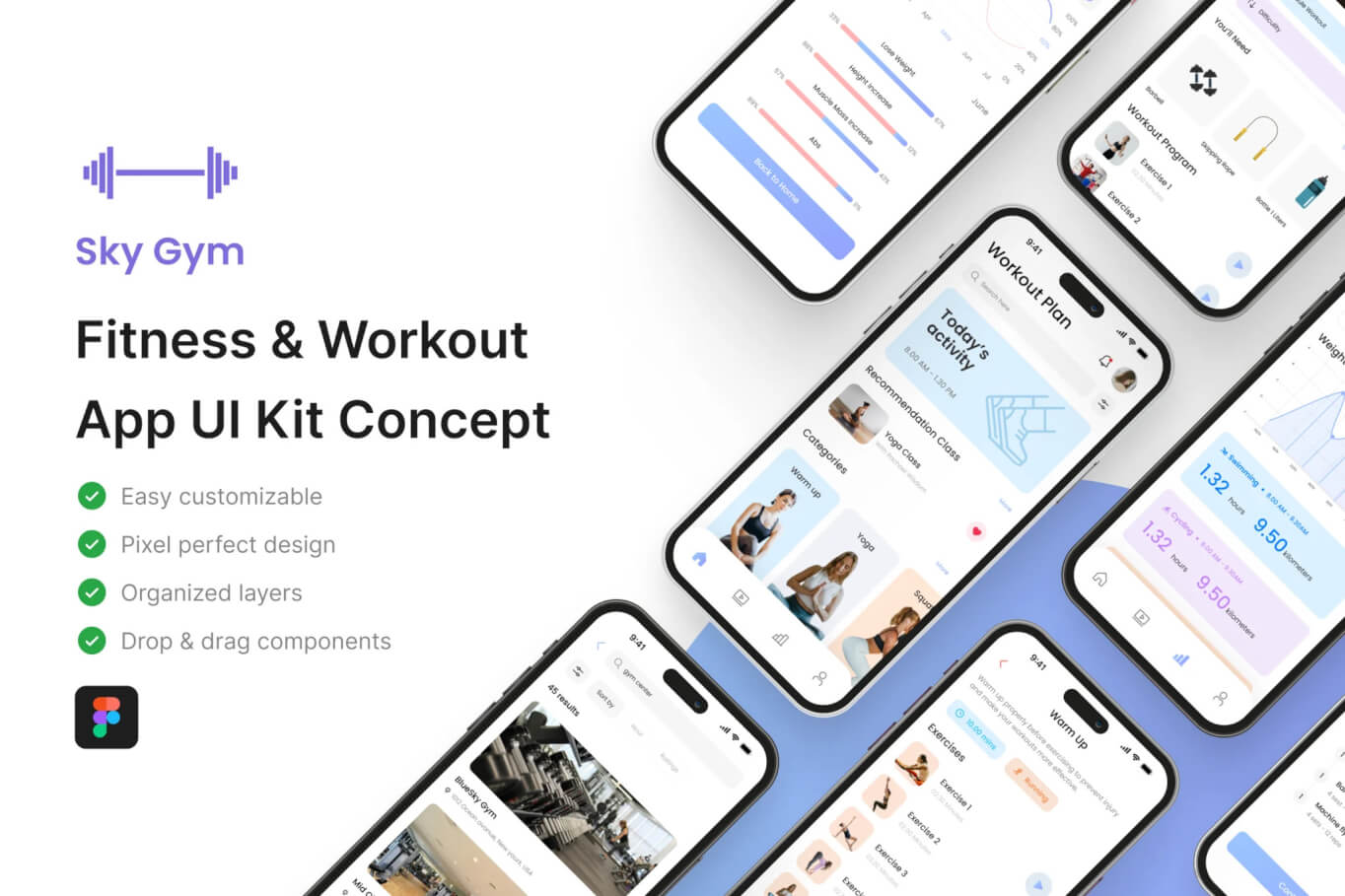 注意:不包括模型和照片。 Sky Gym 应用程序 UI 套件 - 健身和锻炼
