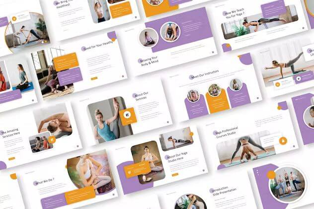 瑜伽课主题演讲模板,适用于您的公司简介、营销和多用途业务