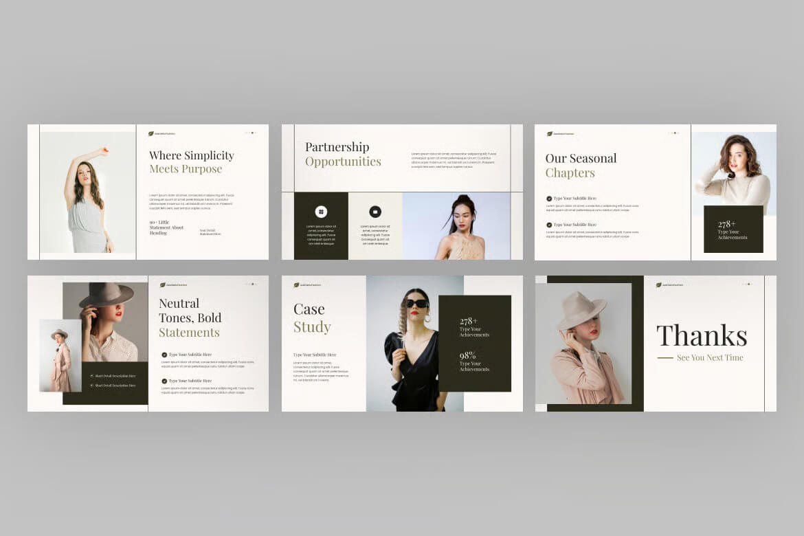 适用于:向客户或投资者展示营销计划、季节性产品发布或品牌战略的时装设计师、创意工作室、营销团队和机构。