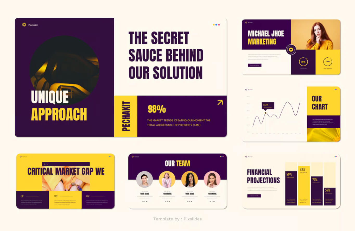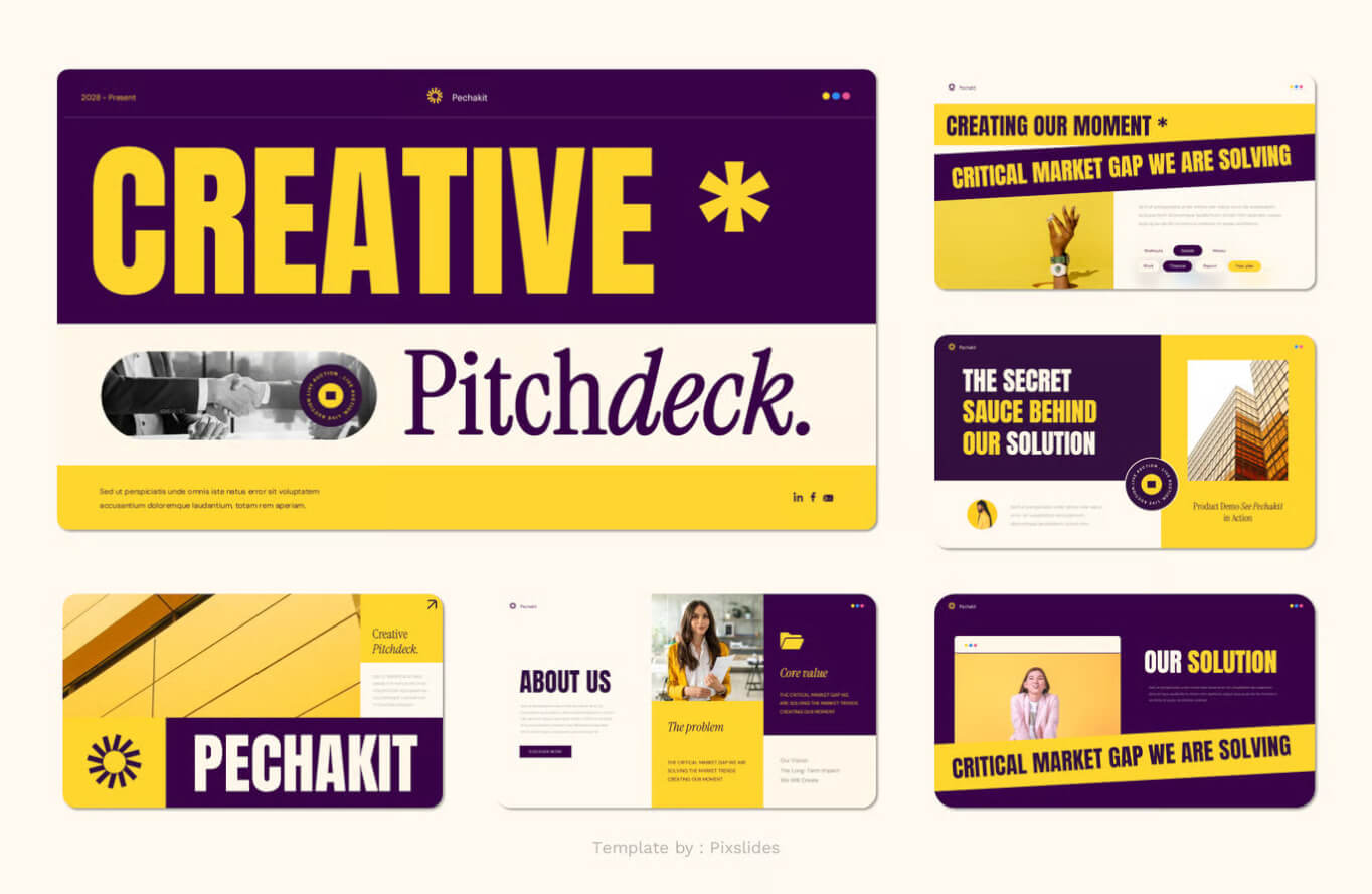 PechaKit - 创意演示文稿模板。每张幻灯片都独具匠心,绝非重复设计。只需使用 Keynote 模板,即可为您的品牌打造令人惊艳的演示文稿。它非常适合用于数字媒体资料包、营销资料包或企业宣传。