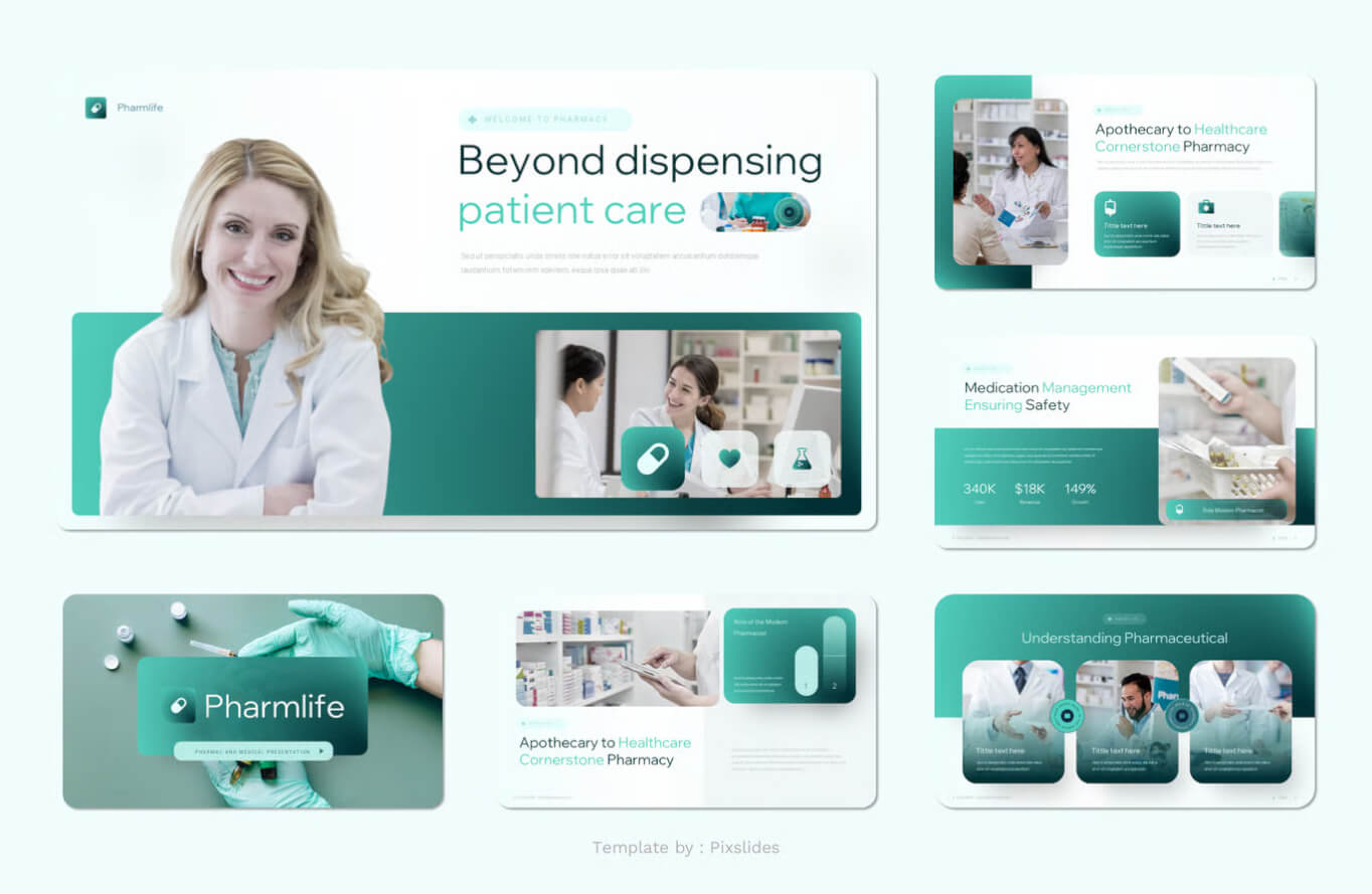 Pharmlife - 医疗和药学演示模板。每张幻灯片都独具特色,而非重复设计。只需使用 Keynote,即可为您的品牌打造令人惊艳的演示文稿。它非常适合用作数字媒体资料包、营销资料包或您的[不清楚 - 可能是“您的”]。