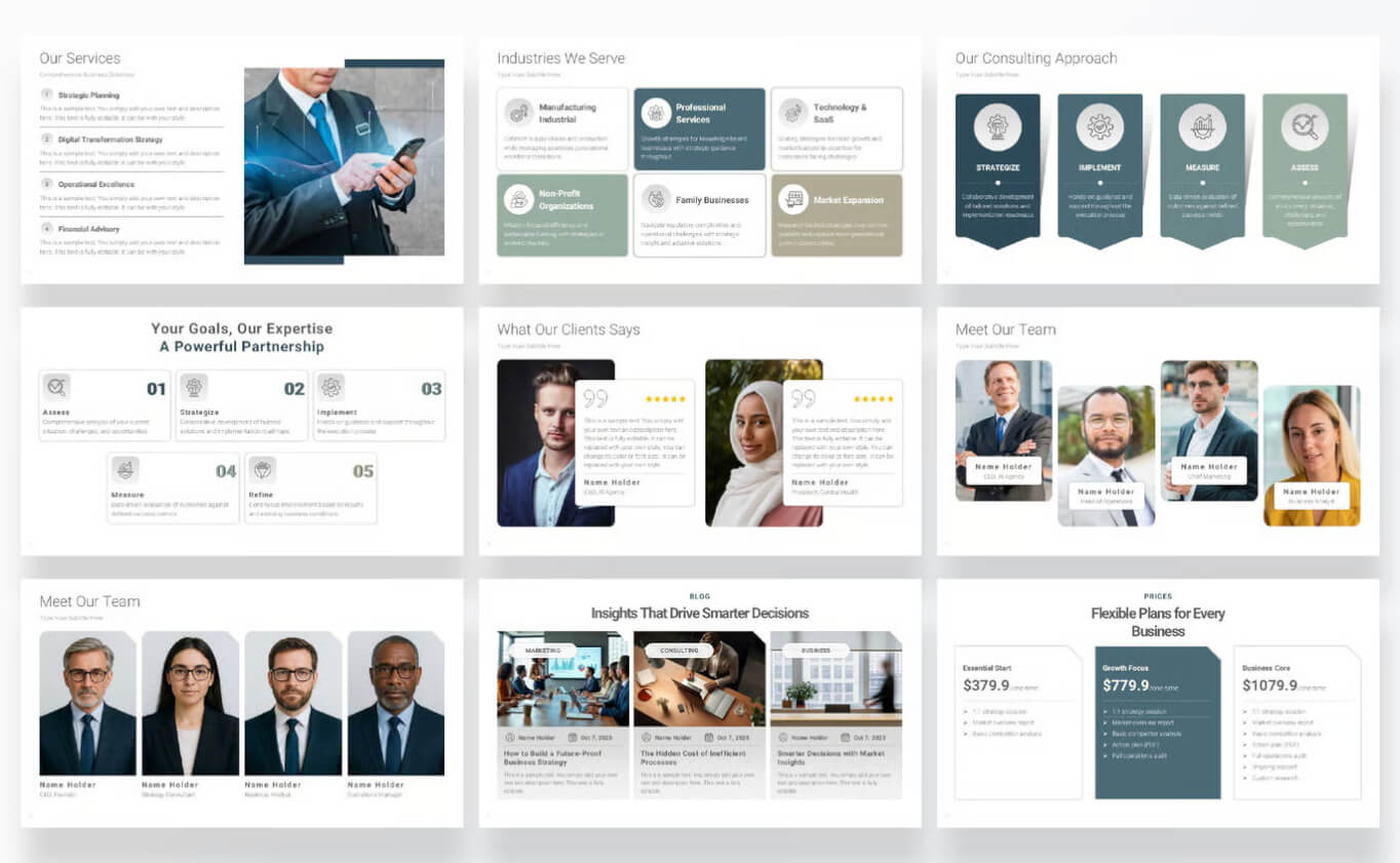 这款专为咨询公司设计的 Keynote 模板旨在帮助专业人士和企业家清晰地展示战略、增长计划和企业理念。其现代化的设计,助您自信而优雅地传达商业理念。