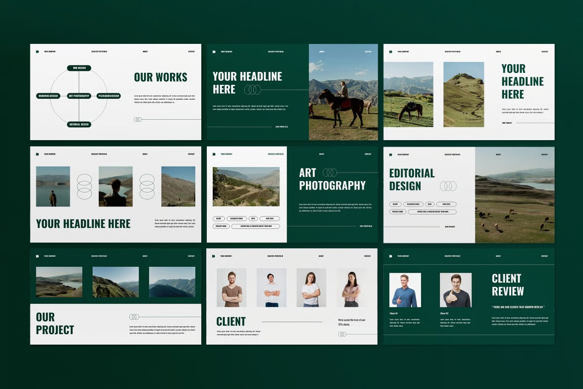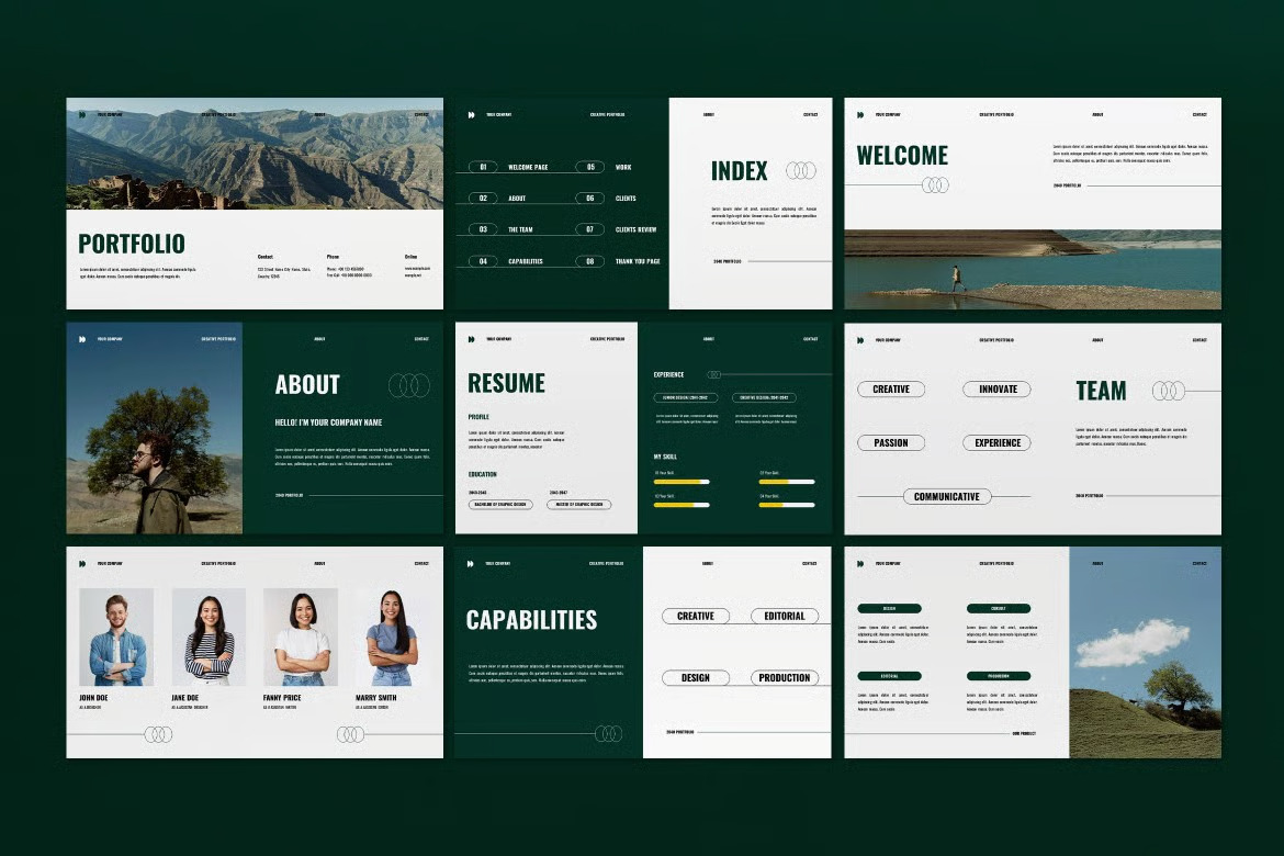 隆重推出演示文稿模板。该模板设计精良,布局多样,可满足您的各种演示需求。您可以使用此模板制作演示文稿、营销资料包、公司简介等。
