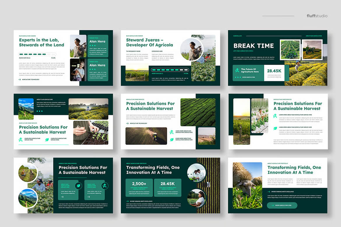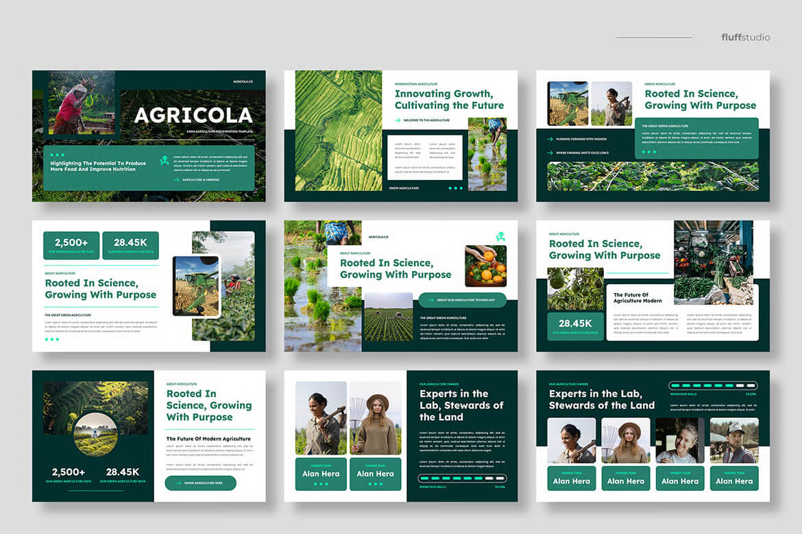 Agricola 采用专业的排版、均衡的留白和现代的图形元素设计,确保您的演示文稿在每一页都显得精致、清晰且引人入胜。