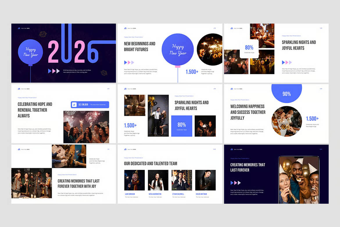 非常适合代理机构、活动组织者、内容创作者、营销团队以及任何想要以精致和庆祝的方式呈现新年内容的人。