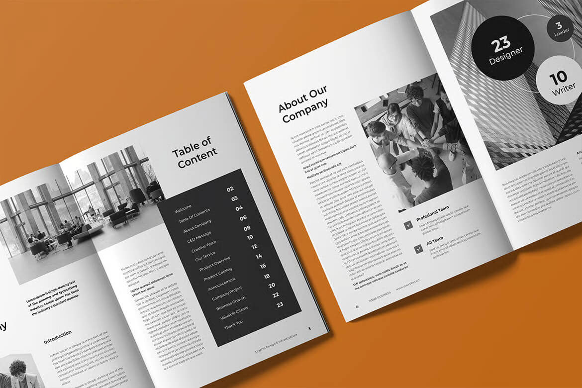 这款宣传册模板简洁美观、现代时尚,专业性强。您可以将其用于任何个人、商业或企业用途。此宣传册可在 Adobe InDesign 中完全编辑和自定义。