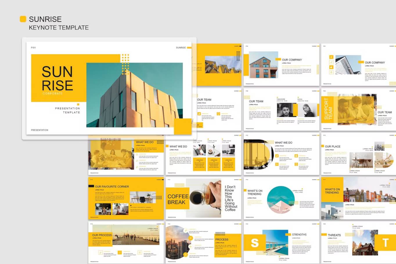 这是 30 页现代而干净的 Sunrise Keynote 演示文稿,可用于任何类型的行业等等。该模板可以轻松编辑和定制。