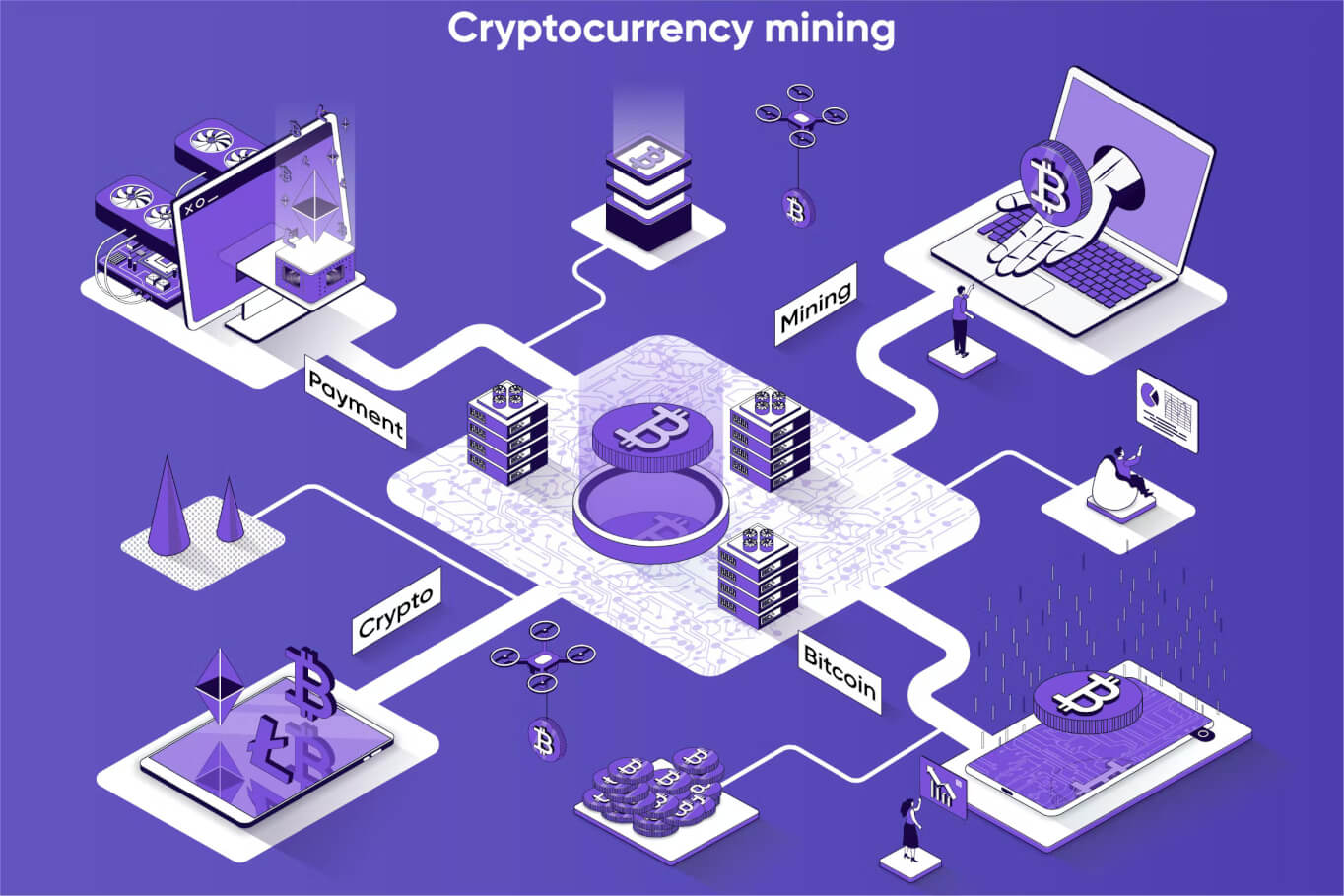 Cryptocurrency 挖掘虚拟币 3D 等距插画