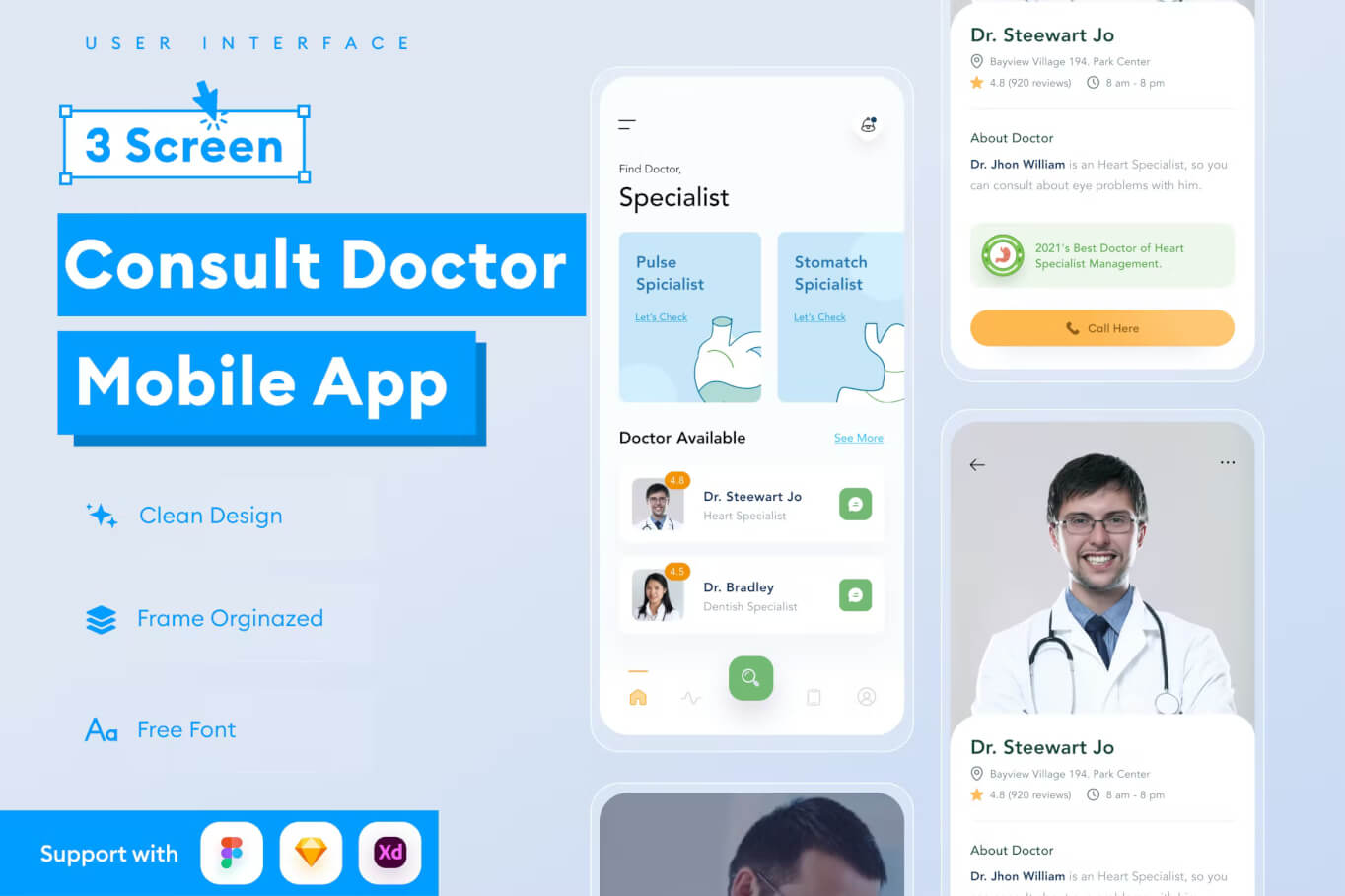 医生预约 | 移动应用程序 UI/UX 设计套件
