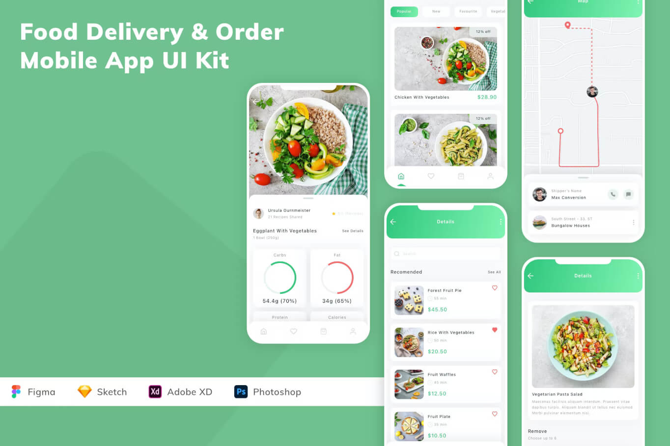 Food Delivery & Order 移动应用程序 UI 套件采用现代设计趋势设计。