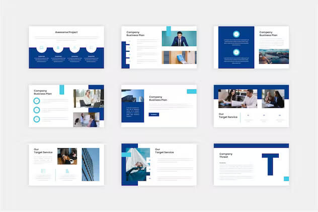 可用于任何类型目的的企业 PowerPoint 模板,例如:社会机构、营销、金融、摄影、项目、品牌、投资组合、初创公司和个人职责。