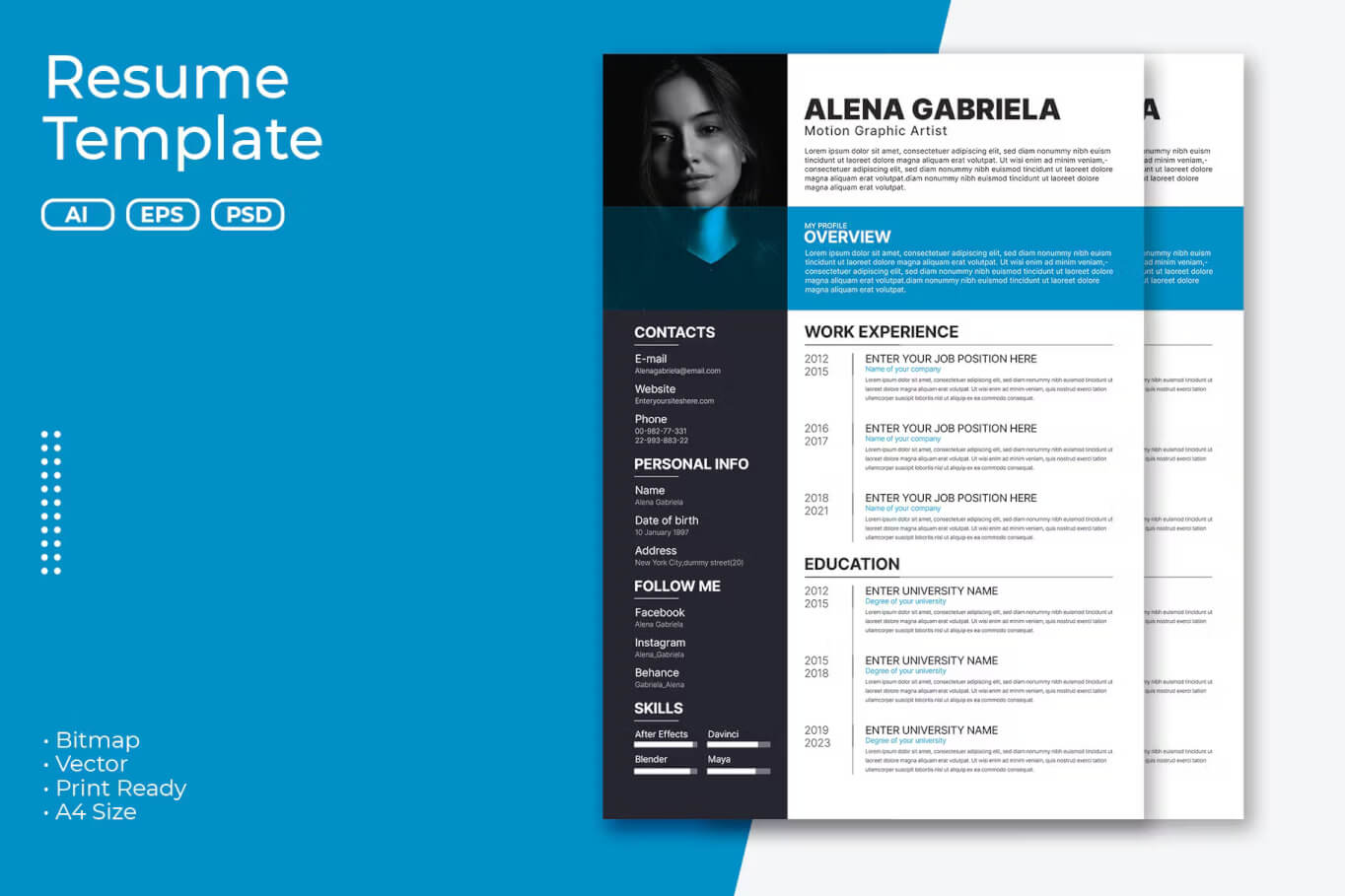 介绍我们新的专业简历模板。现代简洁的设计非常适合想要在专业人士面前展示自己的人。