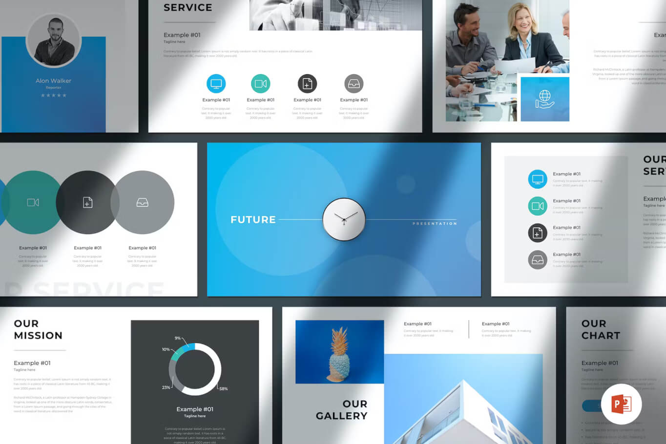 干净、有创意的未来 Powerpoint 模板。完全定制且超级易于使用,适合任何类型的商业用途。
