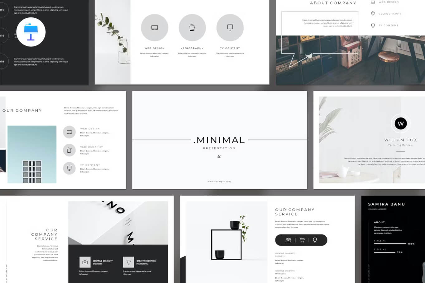 Minimal - 适合您的演示文稿样式模板,您需要独特、专业、干净、有创意、简单的演示文稿模板。所有幻灯片的设计风格都很棒。所有元素都易于编辑,您可以轻松更改颜色以使其与您的个人或公司品牌相匹配。