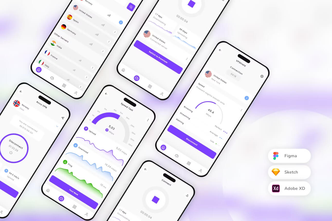 使用 VPN 和速度测试移动应用程序 UI 套件保护数字领域。